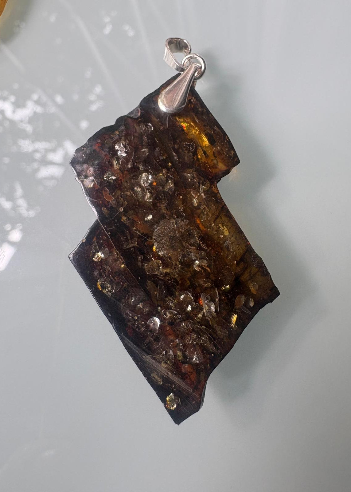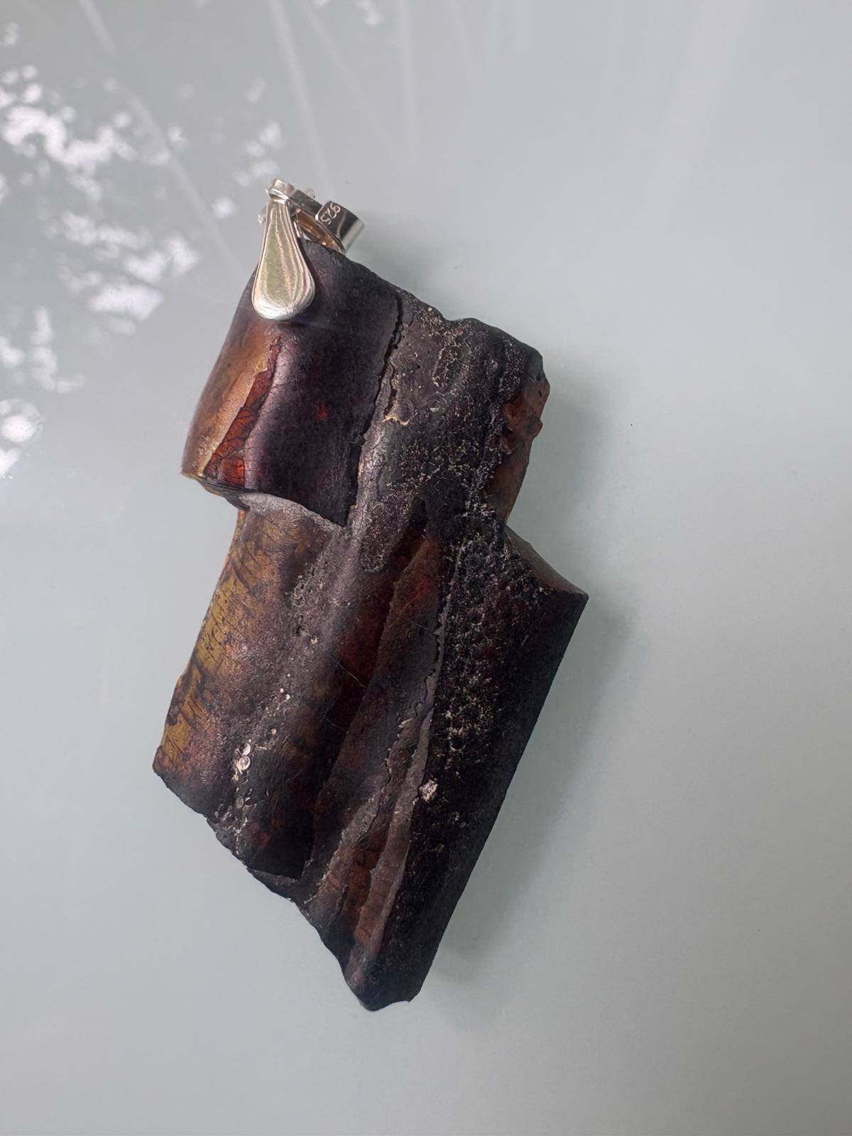 Dieser imposante Bernsteinanhänger überzeugt mit seiner unregelmäßigen Form und dem lebendigen Farbspektrum – von sonnigen Goldtönen bis zu satten Braunnuancen. Die geschliffene und polierte Vorderseite spielt meisterhaft mit dem Licht und enthüllt bei jeder Drehung neue Farbvariationen. Die ursprüngliche Rückseite unterstreicht die Echtheit des Materials, während die elegante 925er Silberfassung einen zeitgemäßen Kontrast schafft. Ein vielseitiges Accessoire, das sich flexibel an wechselnde Lichtverhältnisse anpasst und Ihren persönlichen Stil auf natürliche Weise unterstreicht.