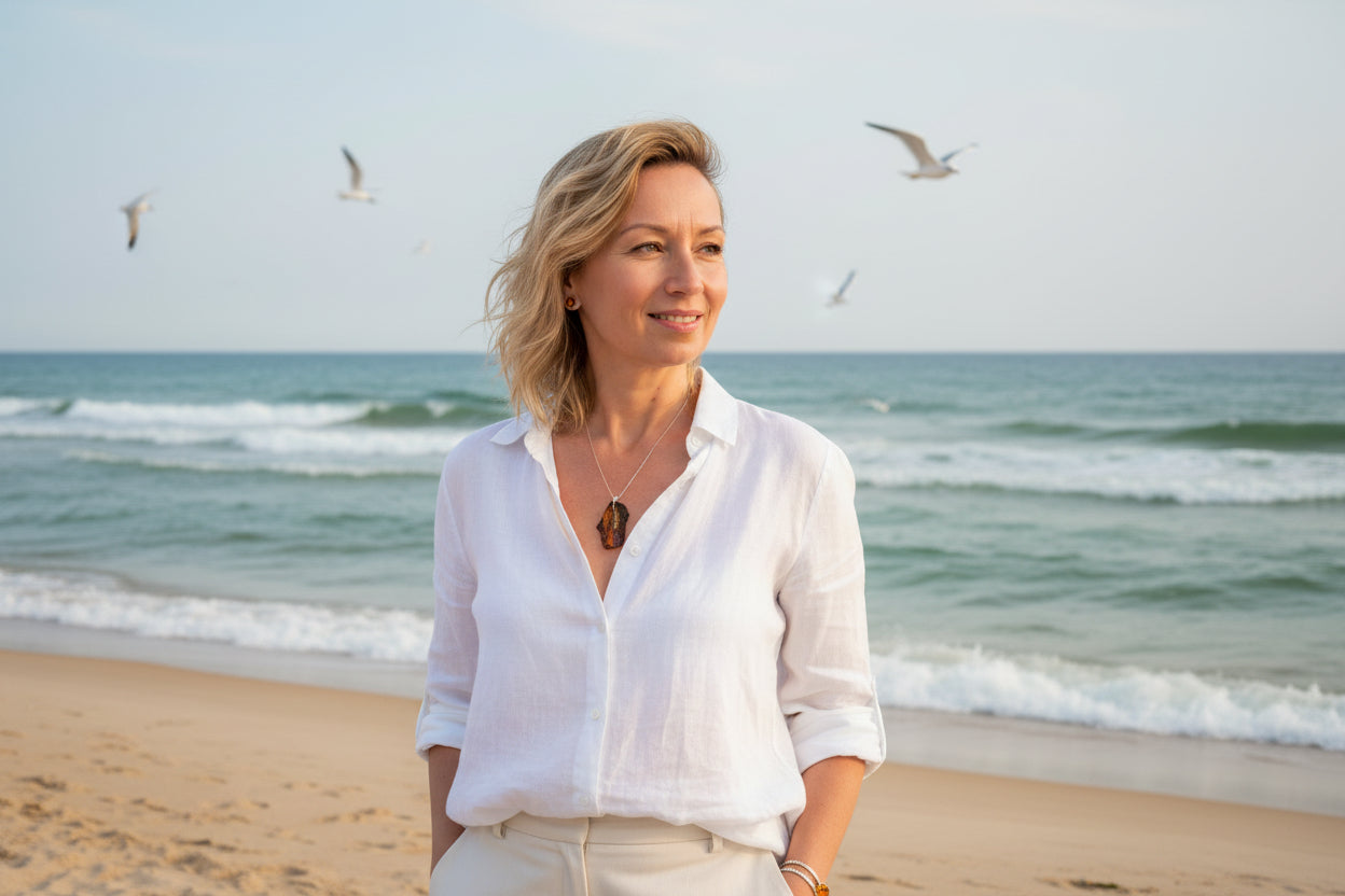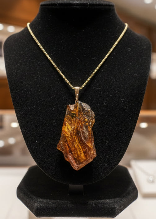 Entdecken Sie diesen faszinierenden Bernsteinanhänger mit charakteristischem Relief-Design in warmer, transparenter Honigfarbe – ein authentisches Stück baltischer Handwerkskunst. Gefasst in edlem Silber 925 mit praktischem Karabiner, eignet sich dieser Anhänger perfekt als persönliches Accessoire oder als durchdachtes Geschenk für Naturliebhaber. Die natürliche Schönheit des Bernsteins macht jedes Stück einzigartig und zeitlos.