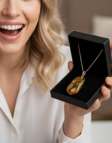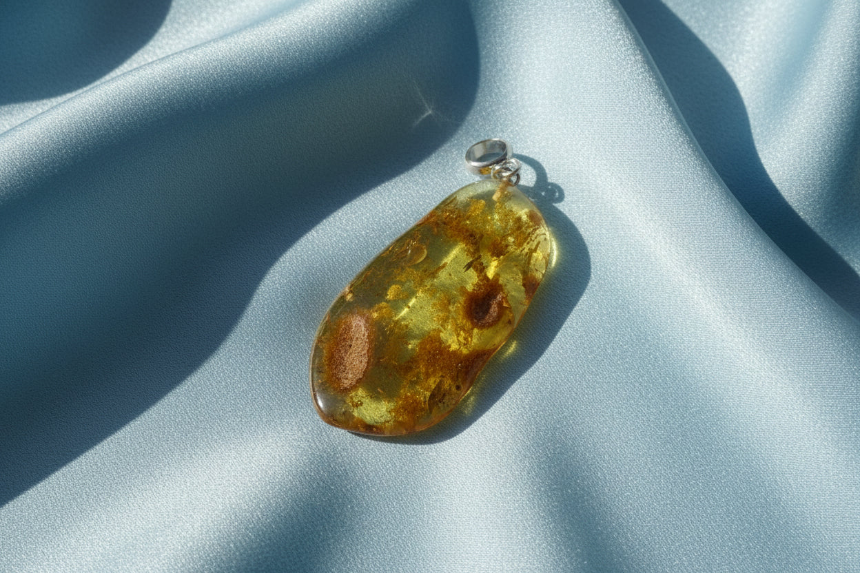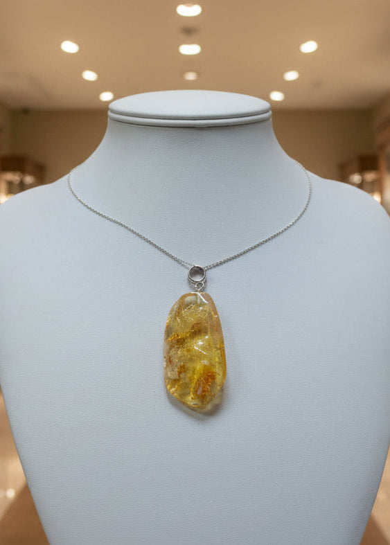 Lassen Sie sich von der zeitlosen Natur dieses exquisiten Bernsteinanhängers in strahlendem Citrin verzaubern. Mit seinem natürlichen, halbtransparenten Glanz und den feinen Strukturmustern, die in jedem Lichteinfall funkeln, verkörpert dieses Stück die baltische Handwerkstradition in ihrer schönsten Form. Die hochwertige Silber-925-Fassung garantiert Langlebigkeit und verleiht dem Schmuckstück eine edle Ausstrahlung. Ideal für besondere Anlässe oder als durchdachtes Geschenk – dieser Anhänger erzählt die Geschichte einer jahrhundertealten Kunstform. Kombinieren Sie ihn mit Ihrer Lieblingskette und kreieren Sie einen individuellen Look, der Ihre Persönlichkeit zum Ausdruck bringt.