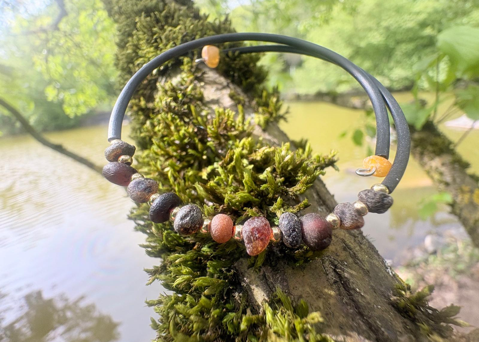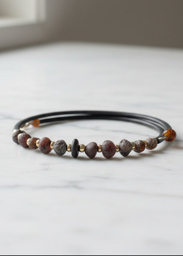 Eleganter Armreif mit feinen tiefen braunen Bernsteinkugeln in zeitlosem Design. Jedes Stück ist handgefertigt und verbindet klassische Bernsteinklassiker mit modernen Elementen. Die hochwertige Kautschukoberfläche und die verstellbare runde Form ermöglichen optimalen Tragekomfort für jeden Handgelenkumfang. Ein vielseitiges Accessoire für den täglichen Gebrauch oder als durchdachtes Geschenk.
