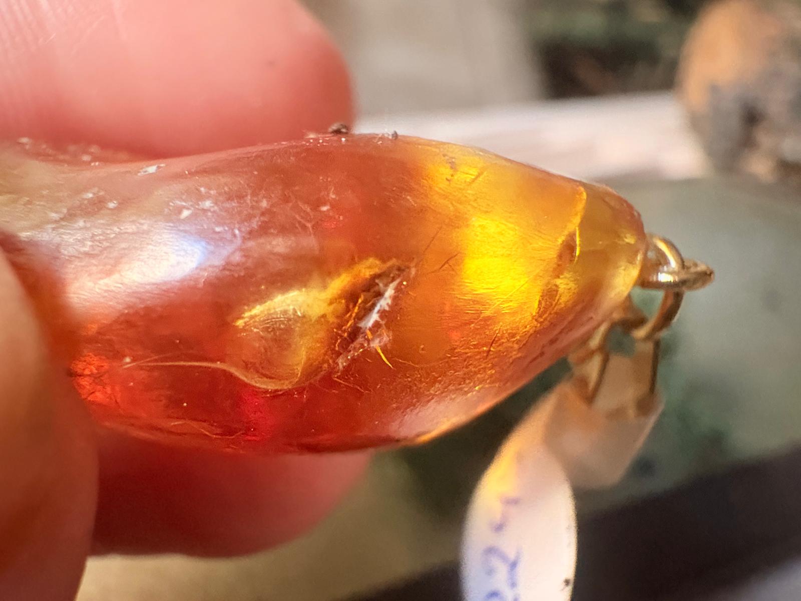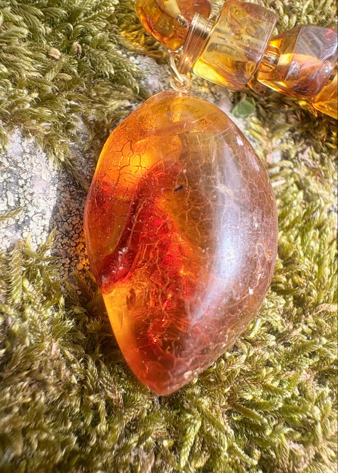 Dieser exquisite Bernstein-Anhänger mit Insekt als Inkluse präsentiert sich in warmem, goldenem Glanz – ein Naturstein von feuriger Schönheit. Die fossile Inkluse macht jedes Stück zu einem einzigartigen Zeitfenster in die Vergangenheit. Der Anhänger verbindet zeitlose Eleganz mit authentischer Natur und ist perfekt für Sammler und Liebhaber edler Natursteine. Ein bedeutungsvolles Geschenk für alle, die das Außergewöhnliche schätzen. Ausgestattet mit einer vergoldeten 925er-Silberöse. Die Kette ist nicht enthalten – lässt sich aber ganz einfach aus unserer Kettenkollektion hinzufügen.