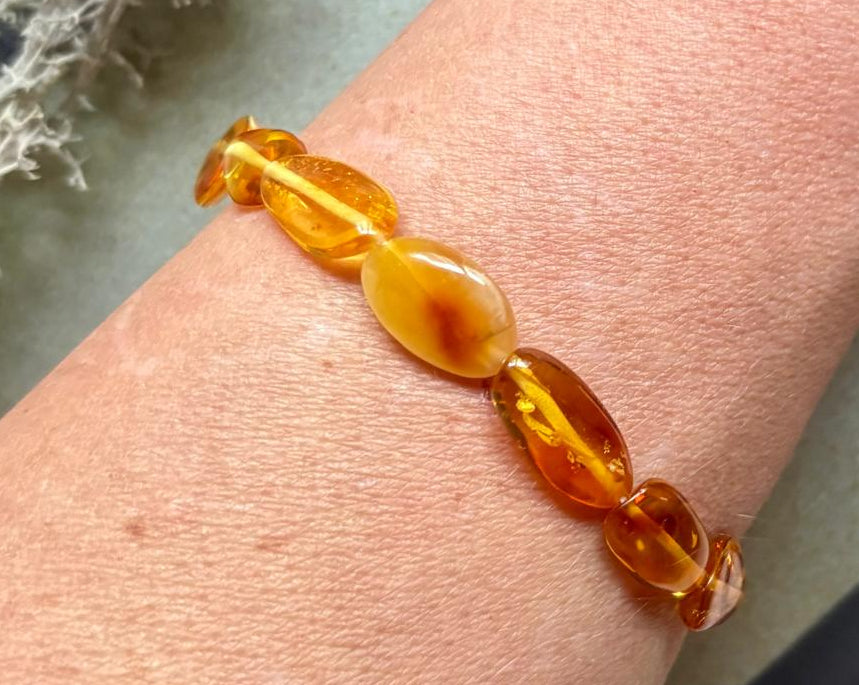 Elegantes Bernstein Armband für Damen und Herren. Dieses zeitlose Accessoire verbindet natürliche Schönheit mit Vielseitigkeit – perfekt zu jedem Outfit und Anlass. Das hochwertige Bernstein-Material besticht durch warme, goldene Töne und einzigartige Maserungen. Das Unisex-Design macht es zum idealen Schmuckstück für jeden Geschmack. Tragen Sie ein Stück Natur am Handgelenk und genießen Sie den klassischen Charme dieses besonderen Armbands.