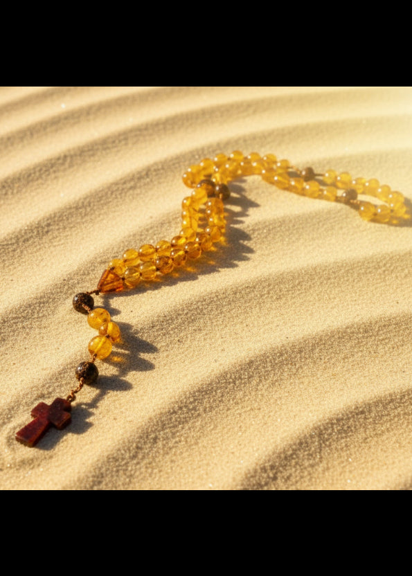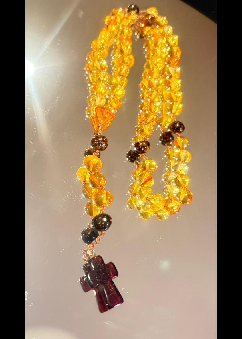 Entdecken Sie diese wunderbare baltische Bernstein-Gebetskette – ein Meisterwerk handwerklicher Kunst für ernsthafte Beter und Schmuckliebhaber. Jede Kugel wurde sorgfältig aus echtem, natürlichem Bernstein gefertigt und besticht durch ihre charakteristische goldgelbe Färbung mit subtilen grün-braunen Nuancen. Das polierte Kreuz in tiefem Kirchenrot verleiht dieser Kette zeitlose Eleganz und spirituelle Bedeutung. In großzügiger Größe perfekt für Erwachsene – ideal als persönliches Andachtsstück oder als durchdachtes Geschenk für gläubige Menschen. Ein authentisches Accessoire, das Tradition und Schönheit in jede Kirche und jeden Alltag bringt.