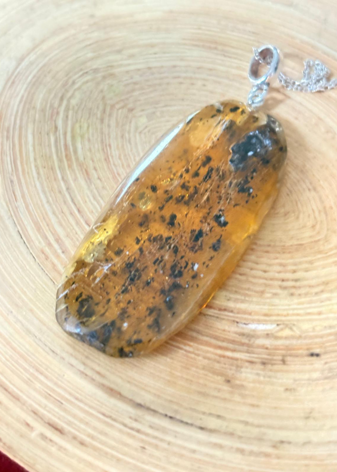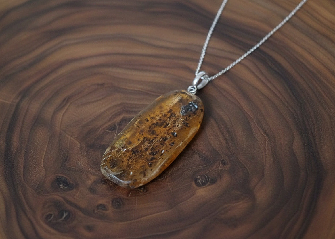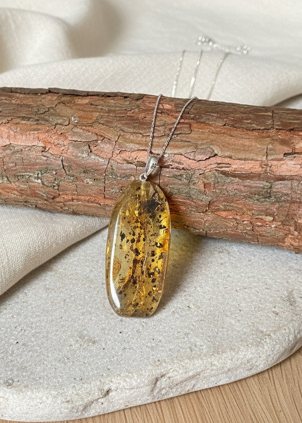Entdecken Sie die zeitlose Eleganz dieses baltischen Bernsteinanhängers – ein Stück Natur mit strahlender Transparenz und charaktervoller ovaler Form. Die feinen schwarzen Punkte erzählen die Geschichte des Steins und machen jeden Anhänger zu einem Unikat. Trotz sorgfältiger Auswahl bewahrt echter Bernstein seine natürlichen Mini-Risse, die seine Authentizität bezeugen. Federleicht und wunderbar zu tragen, eignet sich dieser Anhänger perfekt als persönlicher Talisman oder durchdachtes Geschenk. Die versilberte Öse und der flexible Ring passen problemlos zu jeder Kettenstärke. Ohne Kette – so können Sie Ihren persönlichen Stil verwirklichen.