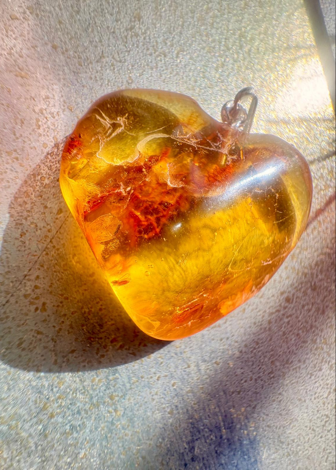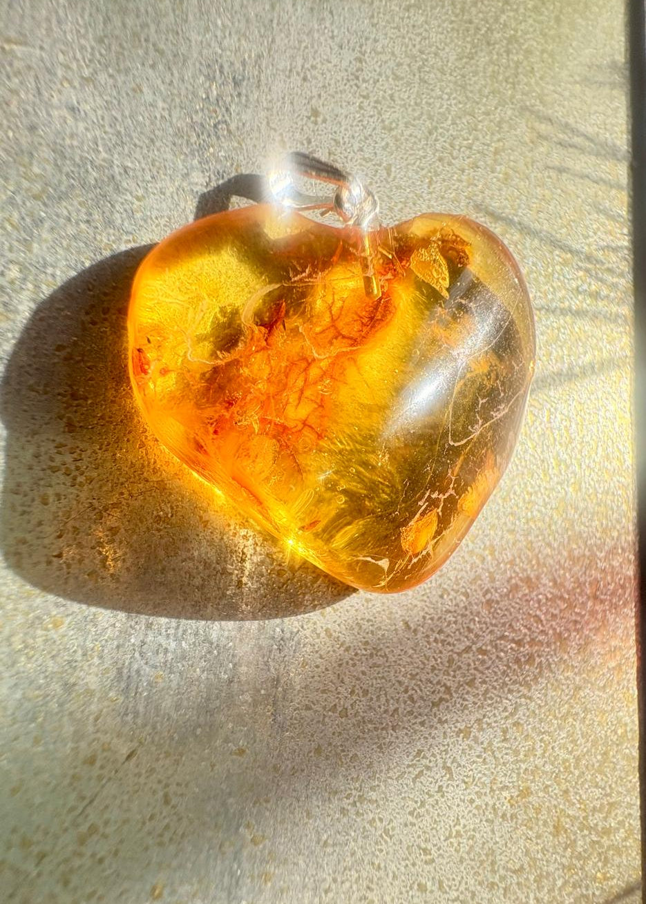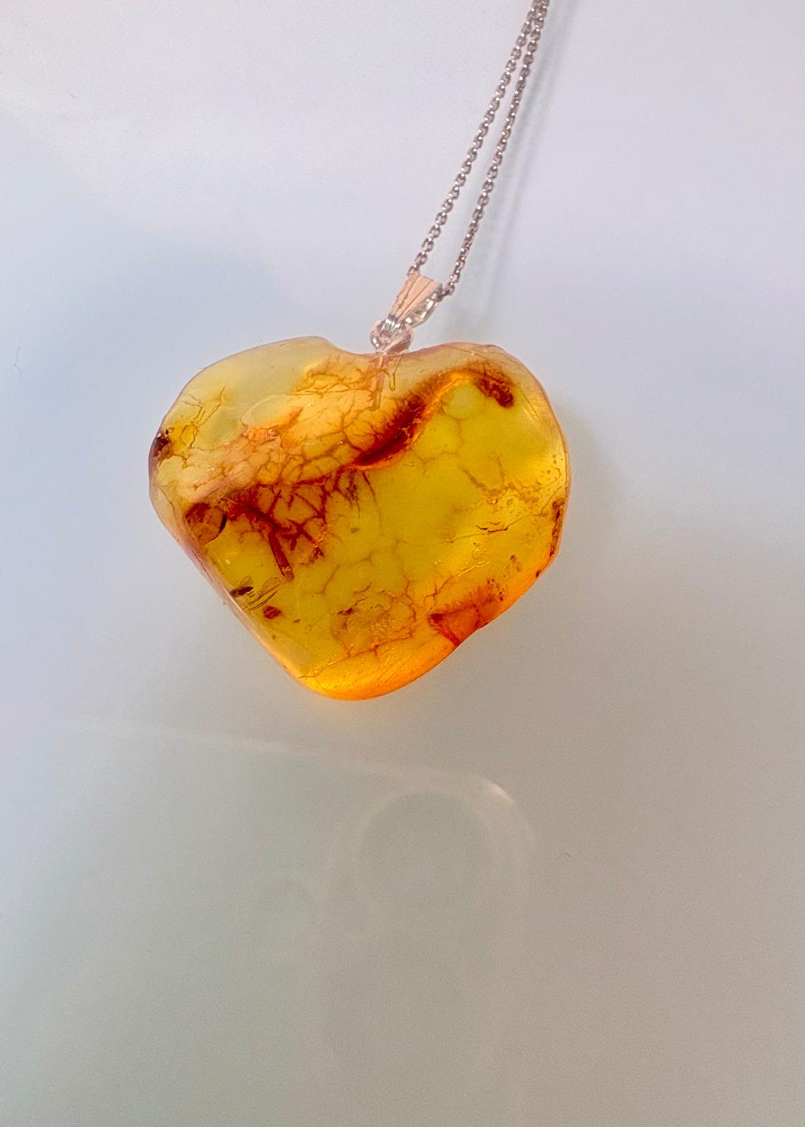 Bernstein Anhänger in Herzform mit 4 organischen Inklusen
