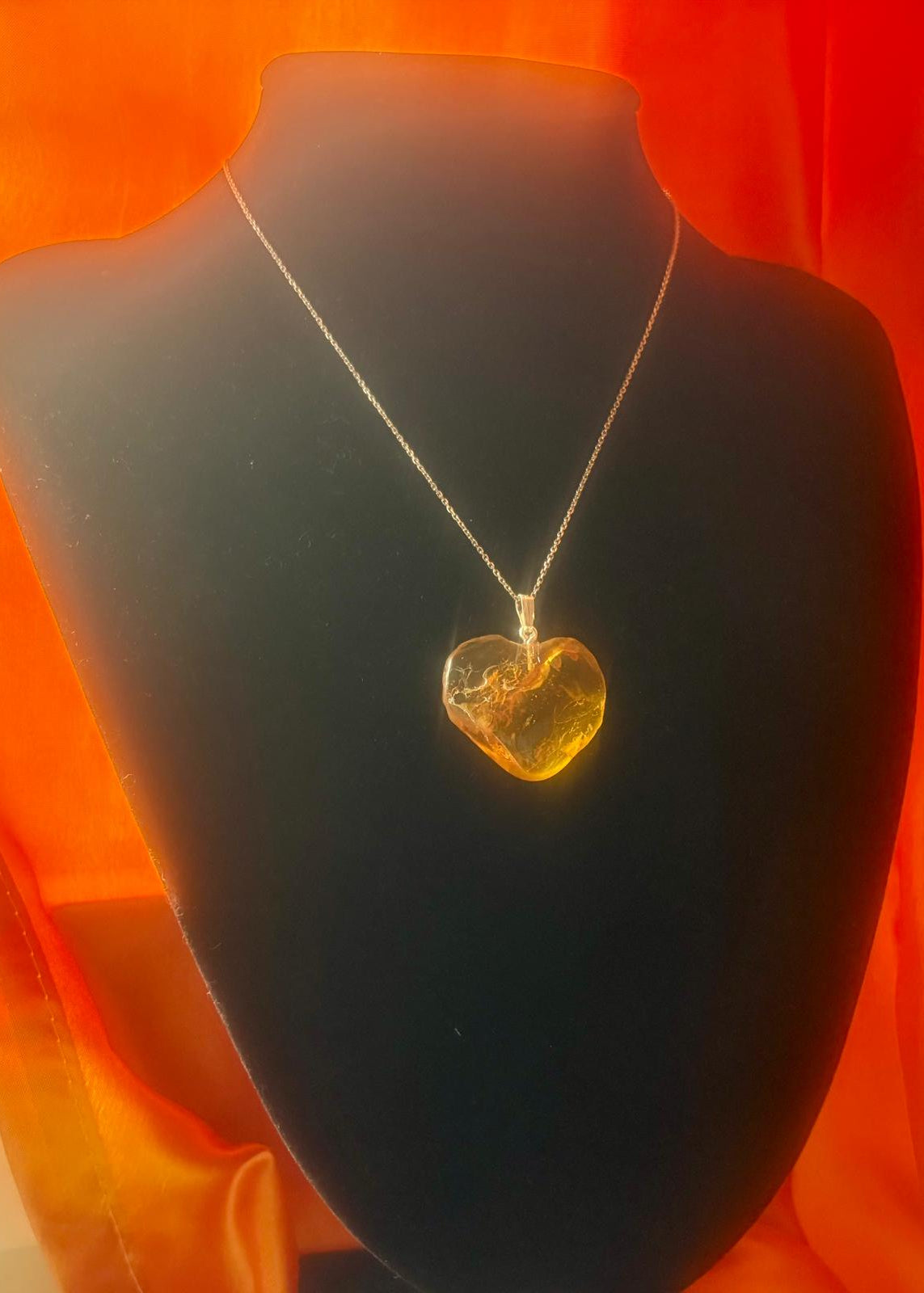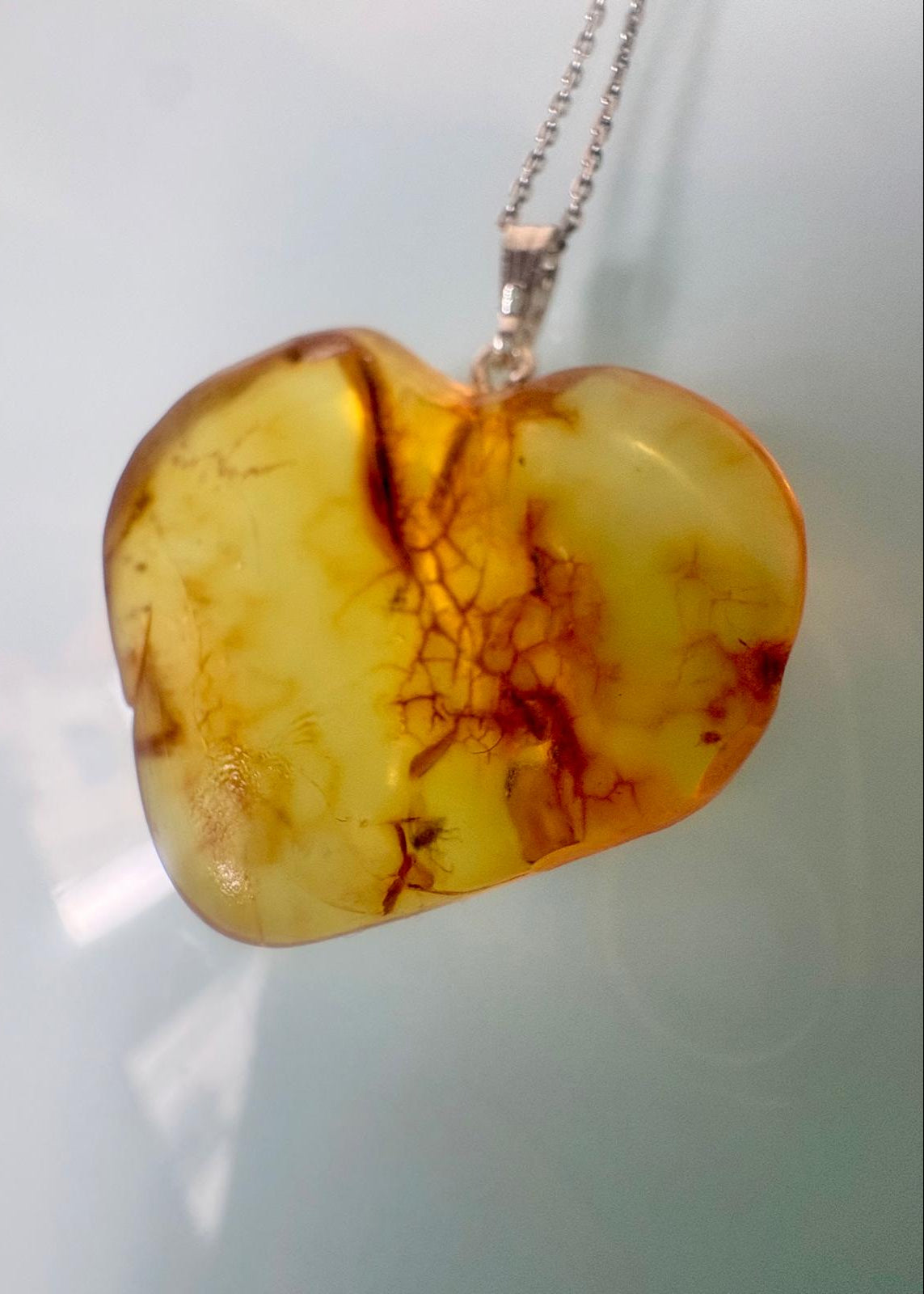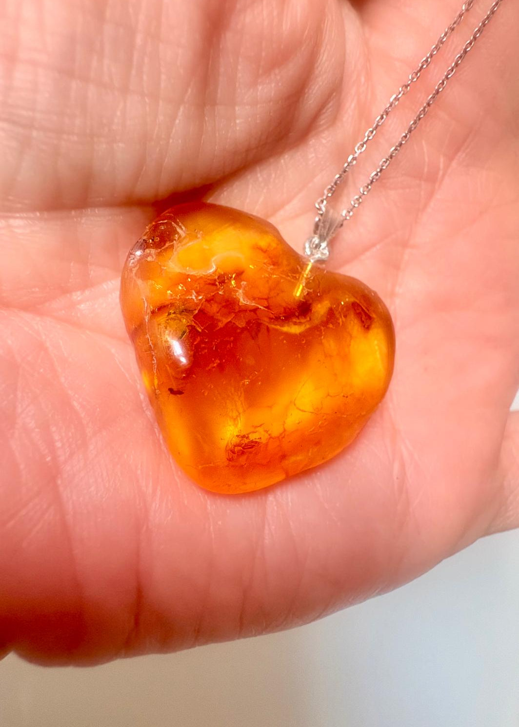 Bernstein Anhänger in Herzform mit 4 organischen Inklusen