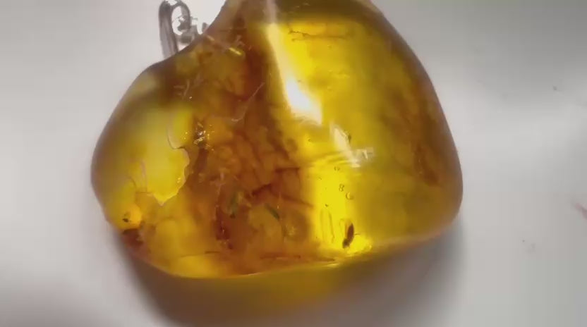 Baltischer Bernsteinanhänger in Herzform mit vier faszinierenden organischen Inklusen aus der Urzeit. Winzige Fliegen und andere prähistorische Einschlüsse sind klar sichtbar – konserviert seit Millionen Jahren in transparentem, poliertem Bernstein. Jedes Stück ist ein absolutes Unikat mit natürlicher Formgebung und individuellem Farbton. Die 925er Silberöse ermöglicht das flexible Tragen an jeder beliebigen Kette. Ein wertvolles Sammlerstück und außergewöhnliches Geschenk für Liebhaber prähistorischer Naturschätze. Ohne Kette. Sorgfältig von Hand gefertigt.
