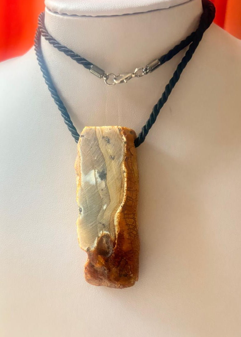 Dieser handgefertigte Rohbernstein-Anhänger bringt baltisches Flair in Ihren Alltag – jedes Stück ist durch seine natürliche Marmorierung absolut einzigartig. Kein Stein gleicht dem anderen, was Ihnen ein wirklich individuelles Accessoire garantiert. Die robuste Schnur mit Edelstahl-Verschluss ermöglicht flexible Trageoptionen von beiden Seiten. Perfekt für alle, die authentische Naturmaterialien lieben und einen Unisex Look bevorzugen, der zeitlos elegant wirkt. Ein kraftvolles Statement für Ihre persönliche Stilentwicklung – natürlich, echt und unvergänglich.