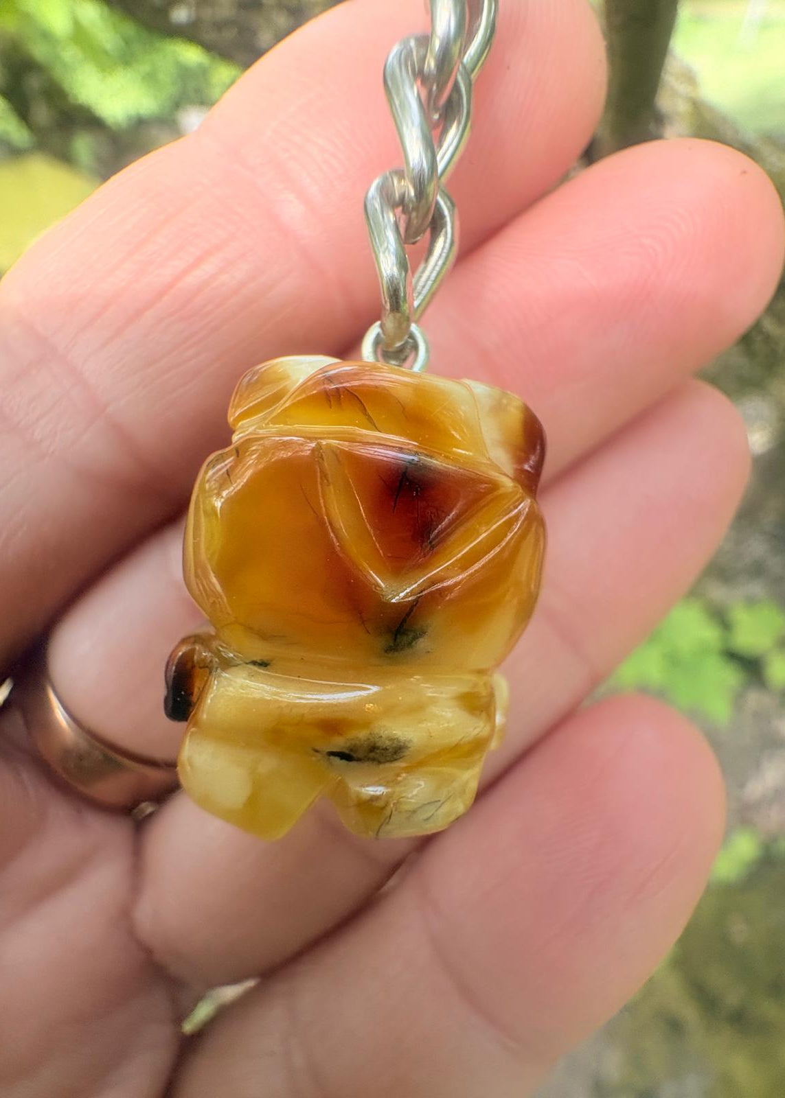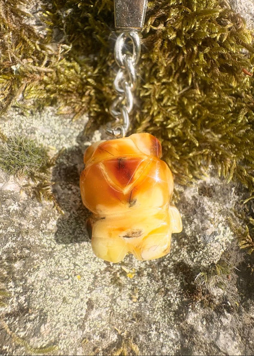 Dieser exquisite Schlüsselanhänger vereint baltischen Bernstein mit meisterhafter Handwerkskunst. Die handgefertigte Bär Figur besticht durch warme Honigöne und charakteristische Maserung – jedes Exemplar ist ein Einzelstück. Robuste Edelstahl-Fassungen schützen vor Verschleiß und Korrosion. Der Bär steht für Kraft, Mut und Geborgenheit. Ein zeitloses Accessoire für den Schlüsselbund, das Natur und Eleganz ausstrahlt – ideal als persönliches Schmuckstück oder durchdachtes Geschenk.