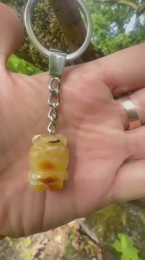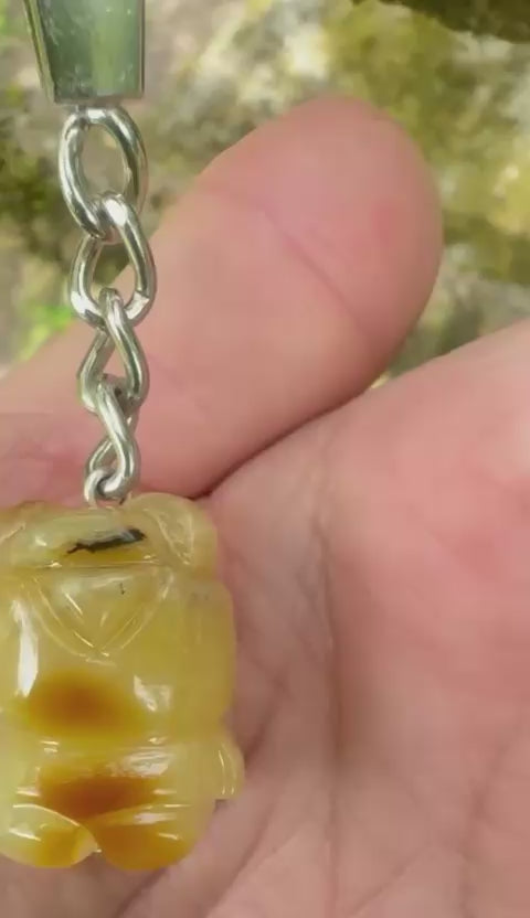 Schlüsselanhänger aus echtem Bernstein mit Bärfigur