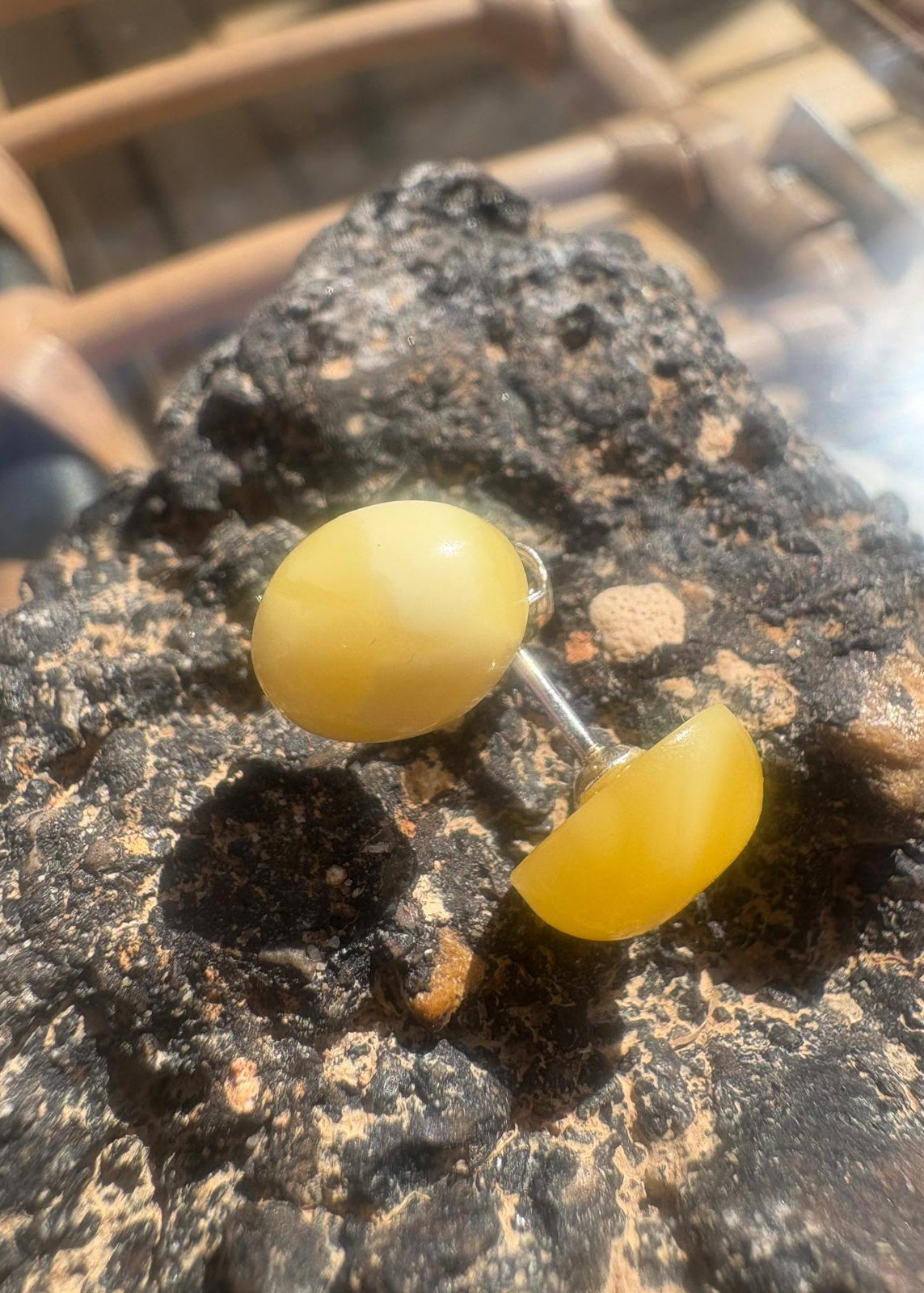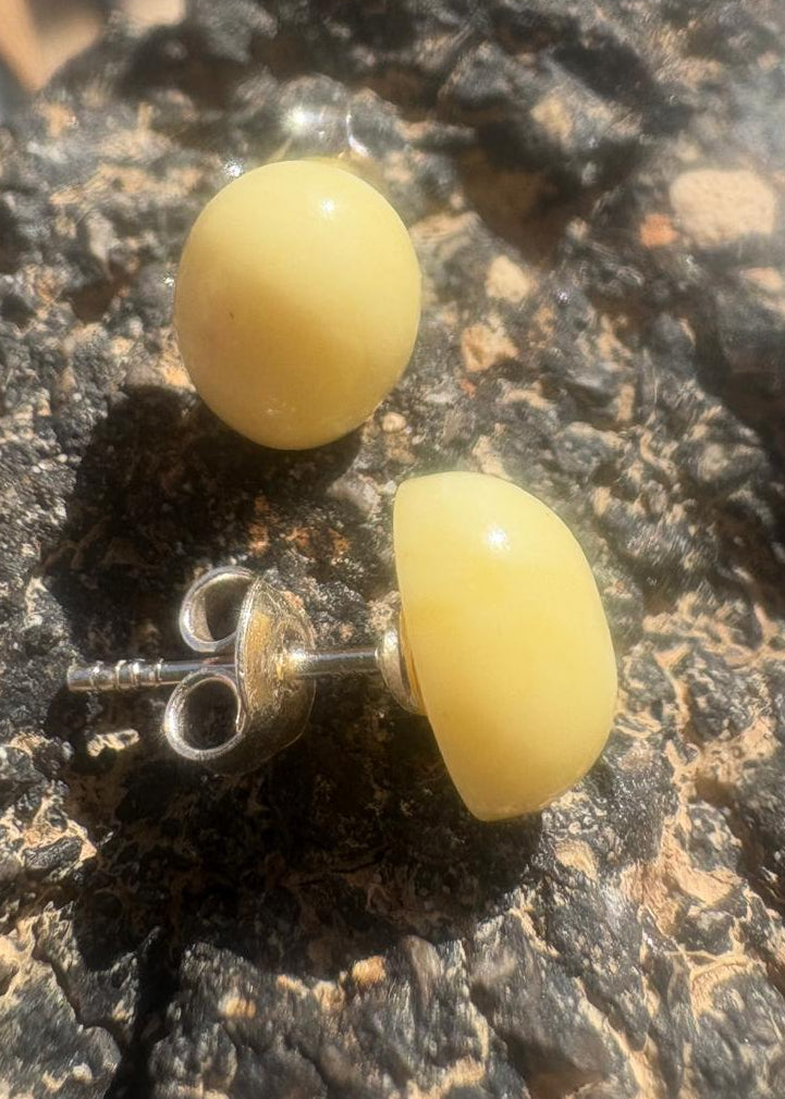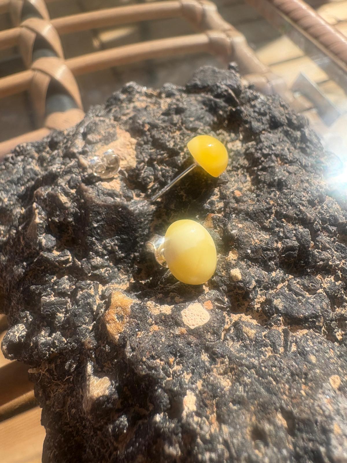 Elegante Ohrstecker aus baltischem Bernstein in warmem Eigelb-Ton. Das minimalistische Design passt zu jedem Anlass und schmeichelt allen Gesichtsformen. Handgefertigte Unikate aus echtem Naturmaterial – zeitlos und vielseitig einsetzbar. Silber 925.