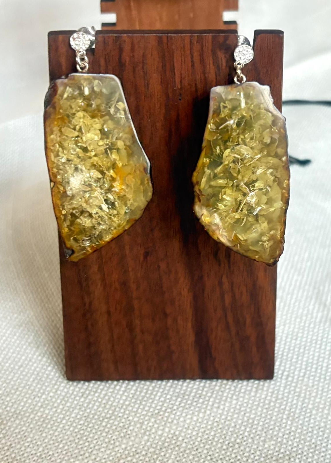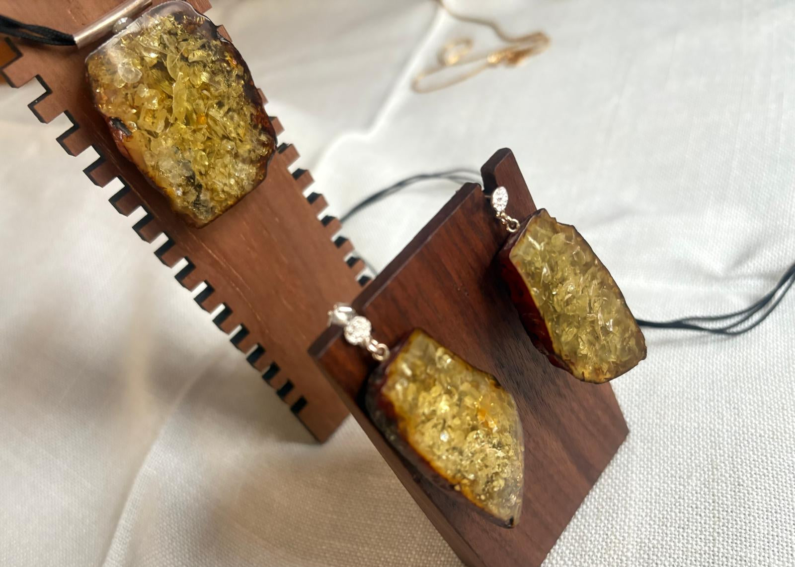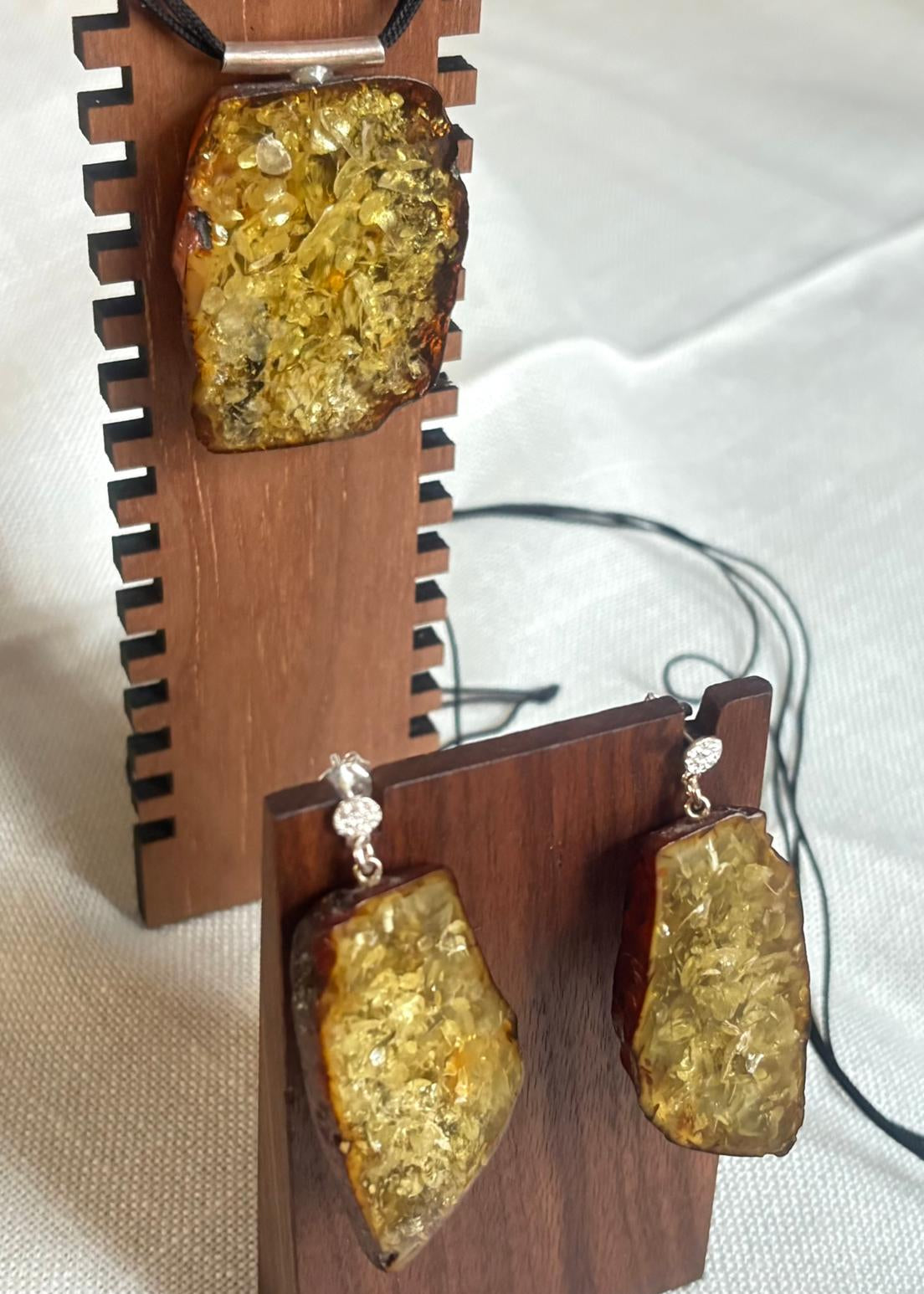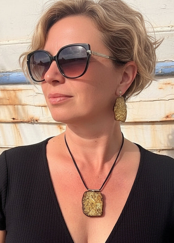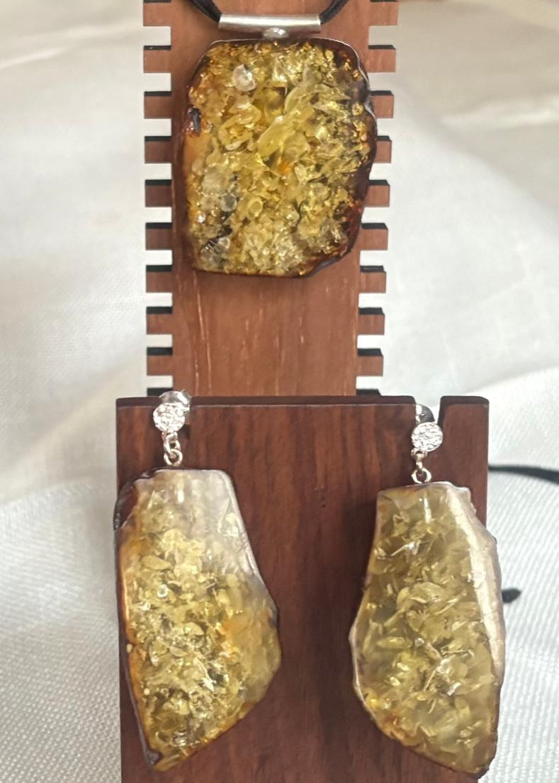Jedes Stück dieses exklusiven Bernstein-Sets ist ein Unikat – handgefertigte Ohrstecker und ein Anhänger aus echtem Bernstein in Sterling-Silber 925.Bernstein in wärmsten Goldnuancen – funkelnde Naturschönheit, die sich nur im Original vollständig offenbart. Eine Rarität, die man erleben muss. Jeder Ohrstecker wurde aus einem Stein sorgfältig geschliffen und poliert, um eine sanfte, ovale Form mit natürlichen Unregelmäßigkeiten zu schaffen. Die großzügigen Bernsteinstücke sind echte Blickfänger, die bei jedem Licht funkeln. Die Rückseite zeigt bewusst die natürliche Rohstruktur des Bernsteins – ein authentisches Detail, das die Schönheit der Natur unterstreicht. Perfekt für die selbstbewusste Frau, die Originalität schätzt. Ohne Kette.