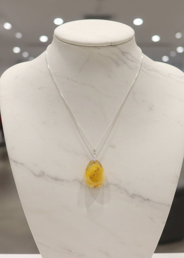 Entdecken Sie die faszinierende Schönheit dieses baltischen Bernstein Anhängers – ein Naturwunder, das sich durch seine elegante Tropfenform und warmen Weiß-Gelb-Töne auszeichnet. Jedes Stück ist ein echtes Unikat mit charakteristischen Farbverläufen und organischen Mustern, die seine Authentizität unterstreichen. Die edle Silber 925 Fassung bietet nicht nur zusätzliche Eleganz, sondern ermöglicht auch die mühelose Befestigung an Ihrer Lieblingskette. Dieses zeitlose Accessoire verbindet natürliche Schönheit mit raffiniertem Design – perfekt für alle, die ihren individuellen Stil mit echten Natursteinen ausdrücken möchten. Ohne Kette geliefert.