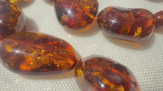 Exquisite Bernsteinkette aus handwerklicher Fertigung mit authentischen baltischen Steinen in warmem Cognac-Glanz. Fein polierte Natursteine bewahren ihre charakteristische Oberflächenstruktur und garantieren Echtheit. Ein zeitloses Accessoire für alle Anlässe und ein durchdachtes Geschenk für Bernstein-Enthusiasten. Mit farblich harmonierendem Kunststoffverschluss.