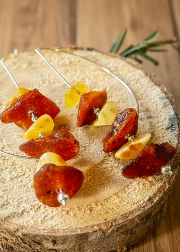 Erleben Sie zeitlose Eleganz mit diesen exquisiten Bernstein-Ohrhängern aus echtem Baltikum-Bernstein und Sterling-Silber 925. Jedes Paar vereint zwei faszinierende Naturfarben – warmes Butterscotch und tiefes Cognac – in einer harmonischen Komposition, die Raffinesse ausstrahlt. Die unbehandelten Rohsteine bewahren ihre ursprüngliche Schönheit und machen jedes Stück zu einem Unikat. Handwerklich gefertigt für Frauen, die Qualität und Authentizität schätzen, sind diese Ohrhänger ein Investment in zeitlosen Schmuck, der Generationen überdauert und Ihre individuelle Eleganz unterstreicht.
