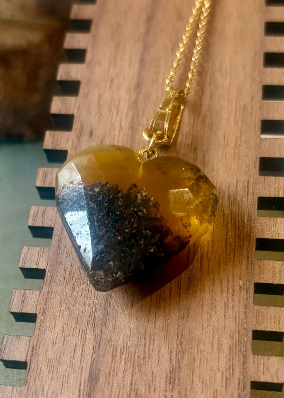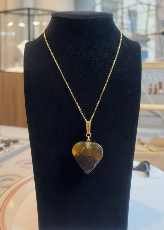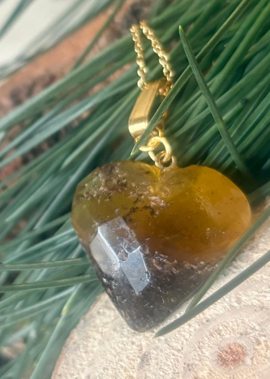 Einzigartige goldfarbene Halskette mit Herzanhänger aus Naturbernstein
