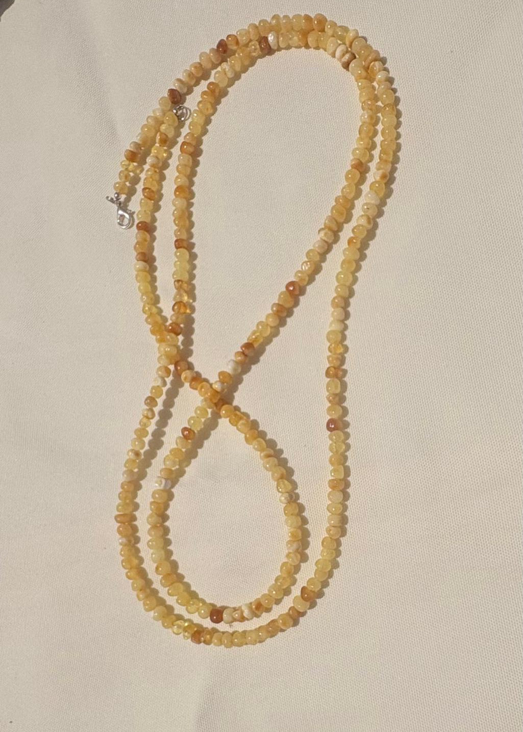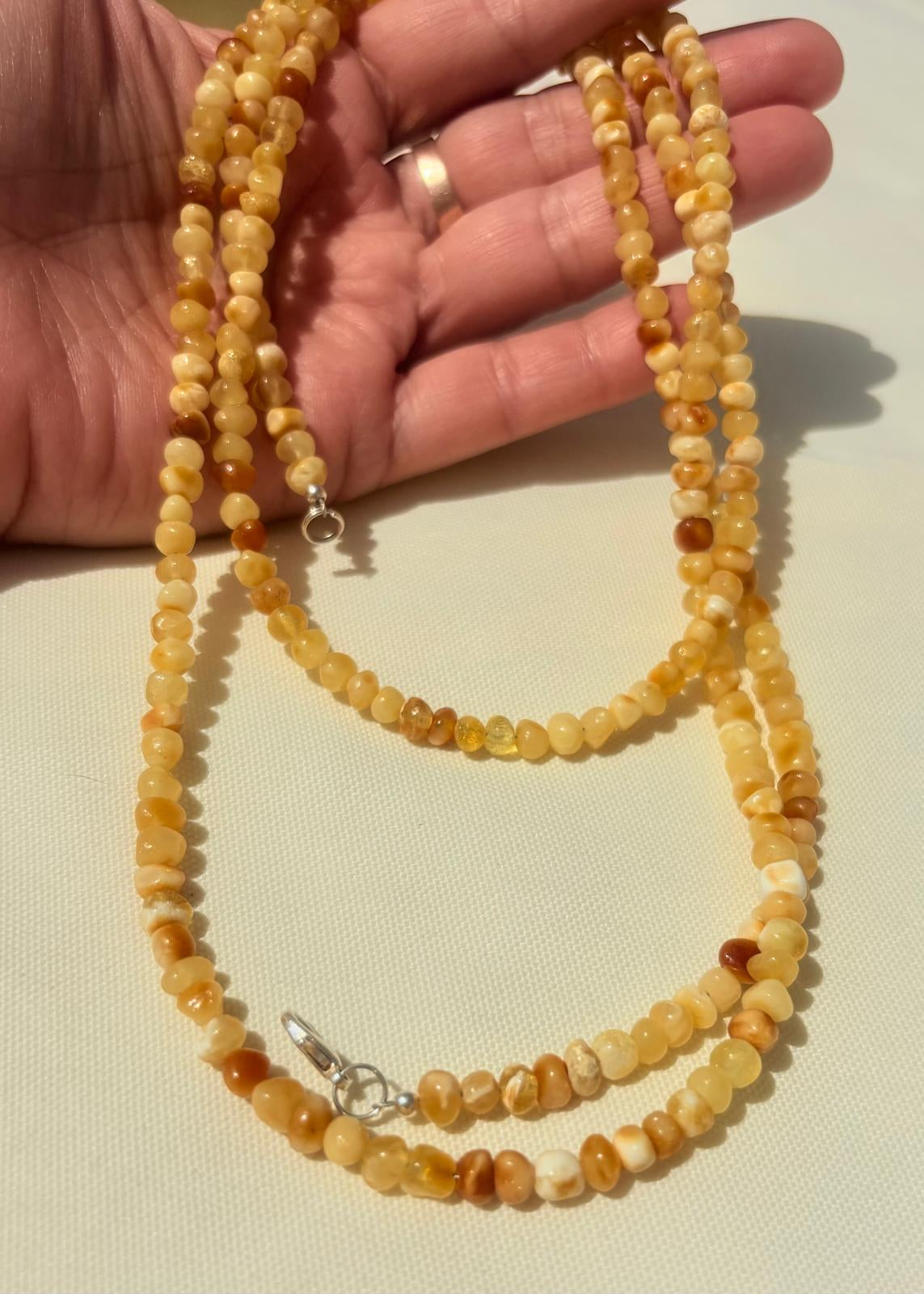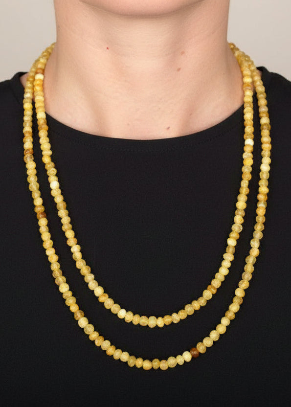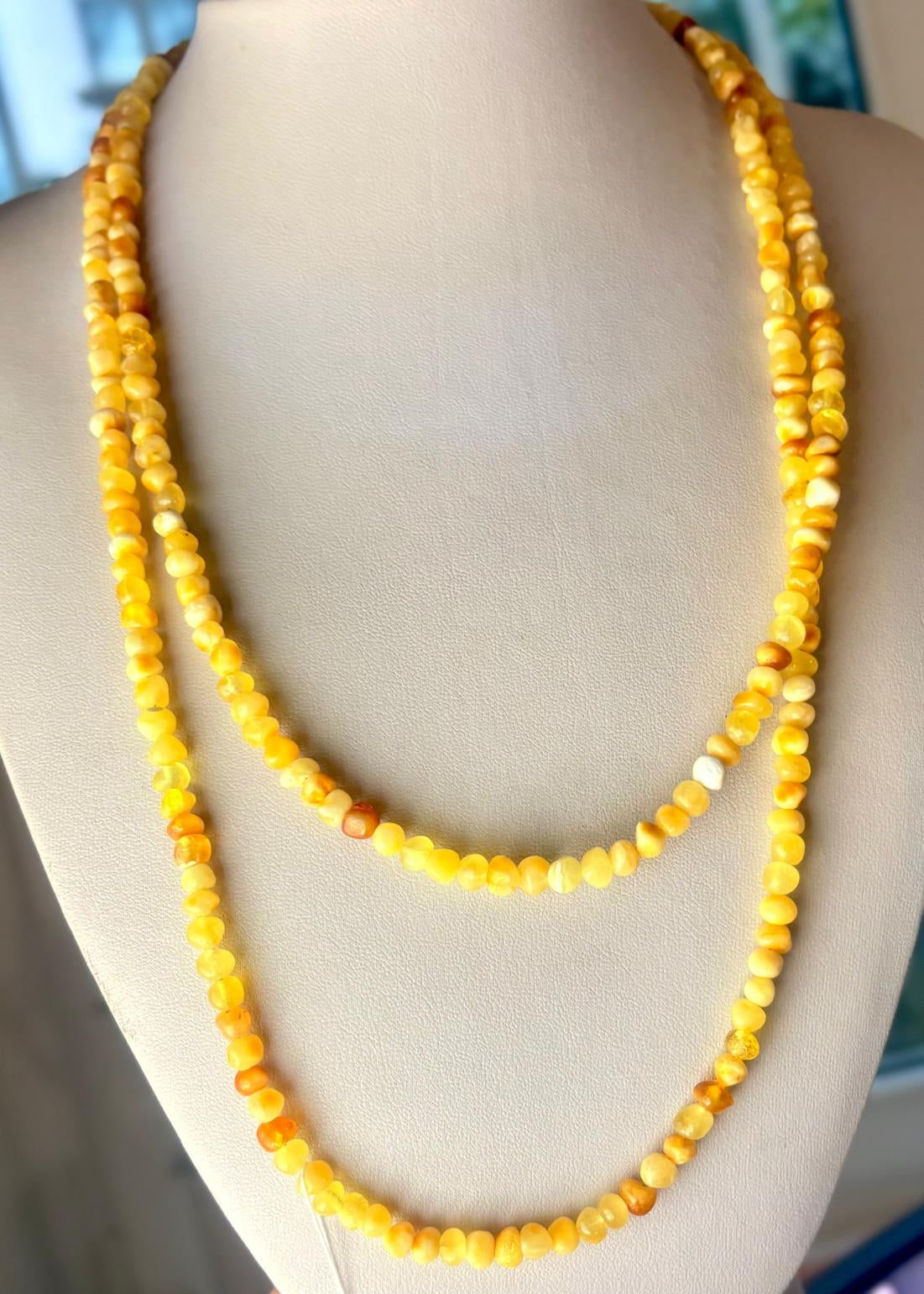 Diese Bernsteinkette aus echtem baltischem Material besticht durch ihre vielseitige Tragbarkeit – lang genug, um elegant doppelt um den Hals gelegt zu werden. Das fesselnde Maisförmigen-Design in samtigen Weiss- und Butterscotch-Tönen offenbart die unverwechselbare Schönheit der Natur. Mit stabilem Silber-925-Verschluss und meisterhafter Handverarbeitung garantiert dieses Schmuckstück zeitlose Qualität und Haltbarkeit. Ideal für Frauen, die authentische Eleganz und natürliche Materialien lieben – und wunderbar zu anderen Bernstein-Stücken unserer Kollektion kombinierbar. Ein Statement-Accessoire, das Ihre Individualität unterstreicht und sich als besonderes Geschenk perfekt eignet.