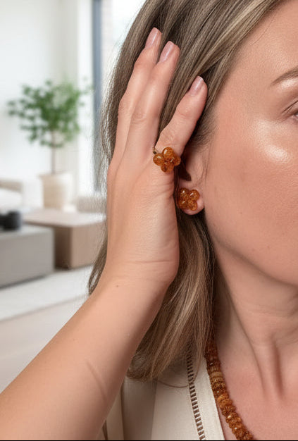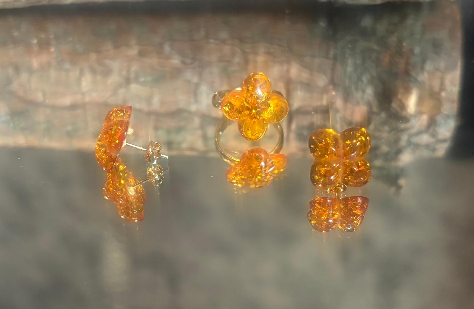 Schönes Set aus einem Ring und einem Paar Ohrstecker Naturbernstein